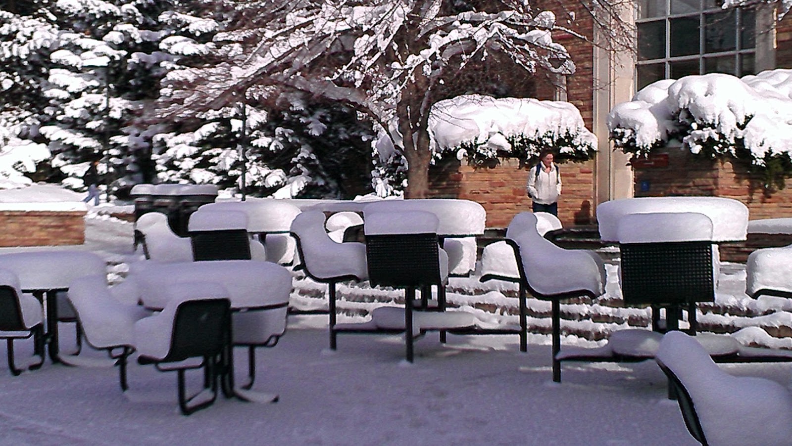 The scene was magnificent. The flatirons were gorgeous, dusted like powdered sugar with snow. It was a bit sloppy and sometimes slick walking on campus, and some older folks came with their walking sticks for safety. But come they did—the sessions were packed all day. Sunshine, blue skies, and fresh snow made for a gorgeous morning.