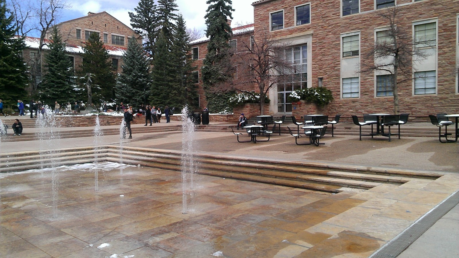 lost most of their snow to the Colorado sun. The fountain was running again,